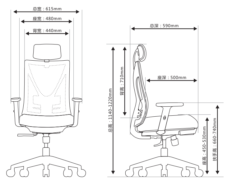 615L*590W*1140-1220H