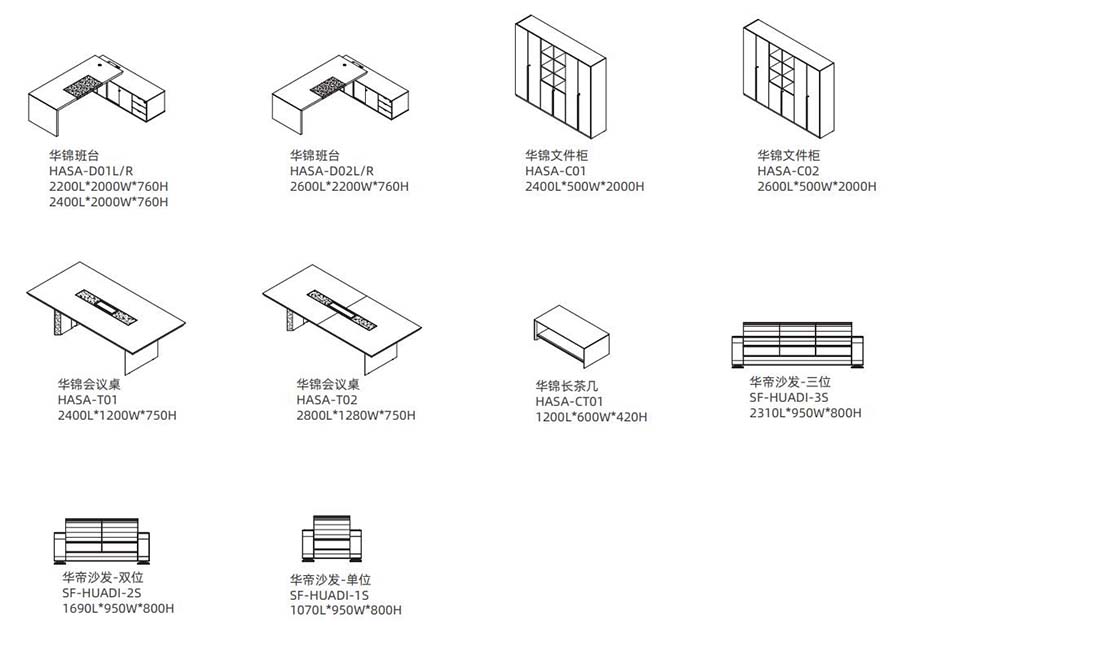 班臺整體造型基本保持45°拼接,以間色作為方案配色,簡約剛直的線條